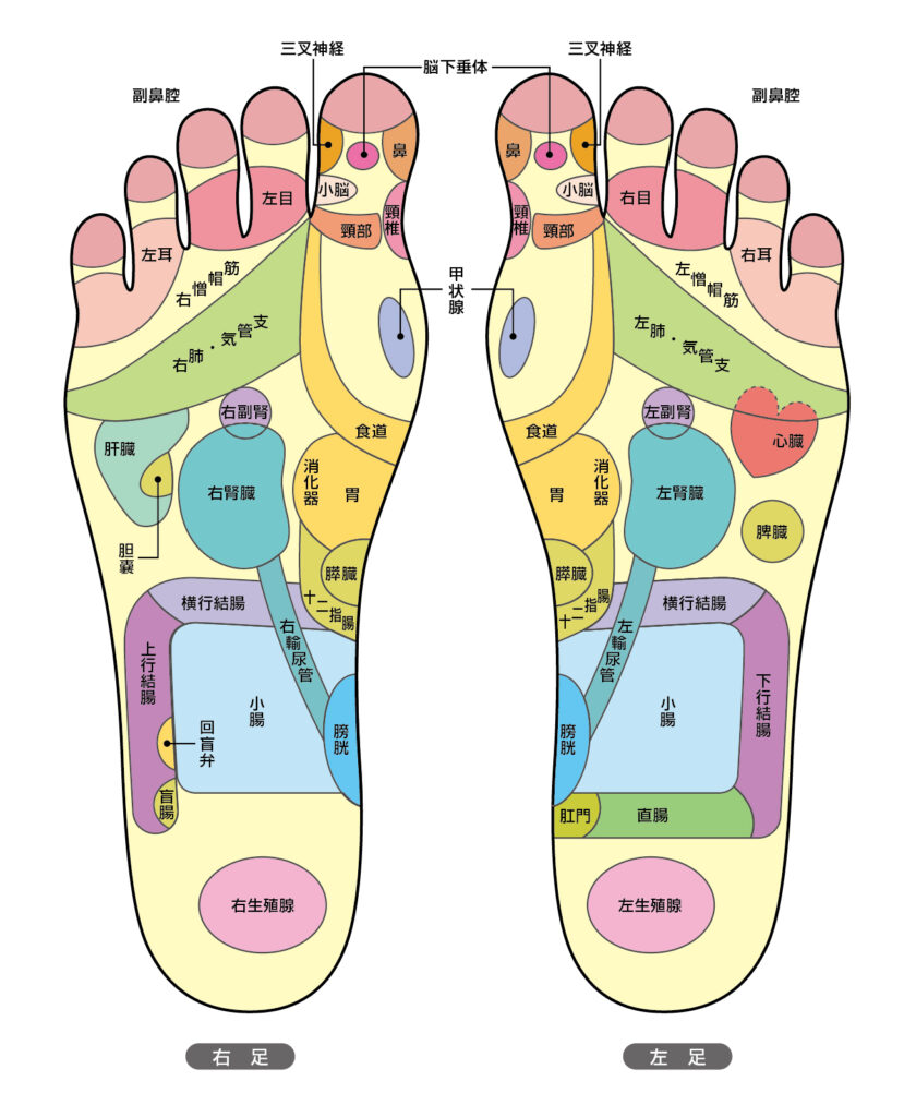 - 冷えが気になる人は、かかと(生殖器・血行系の反射区)を重点的に